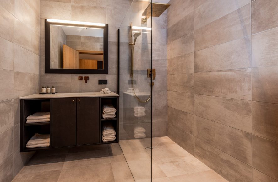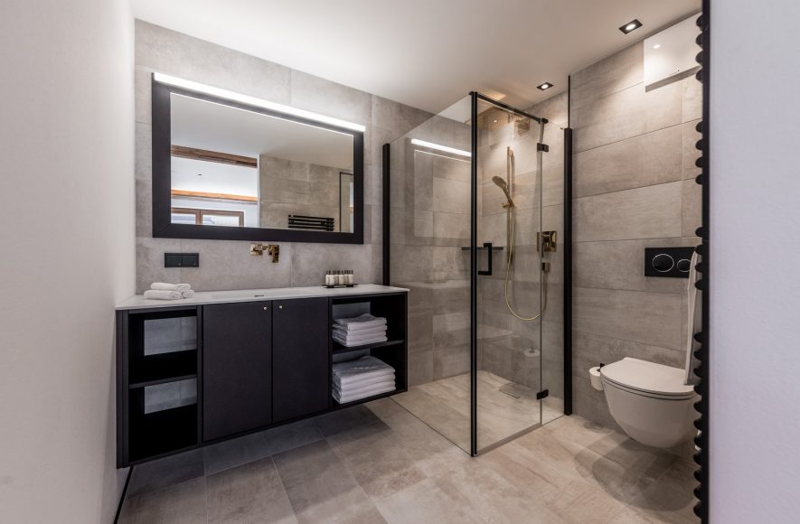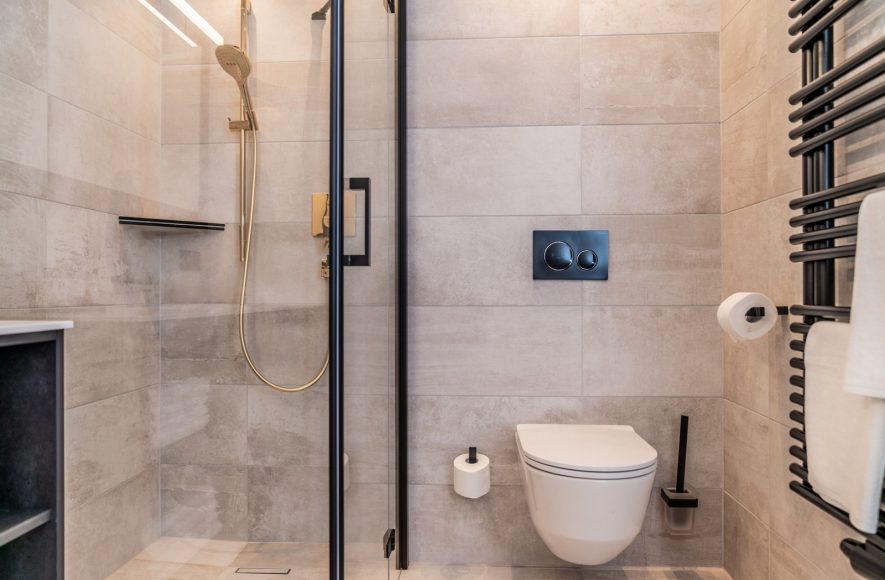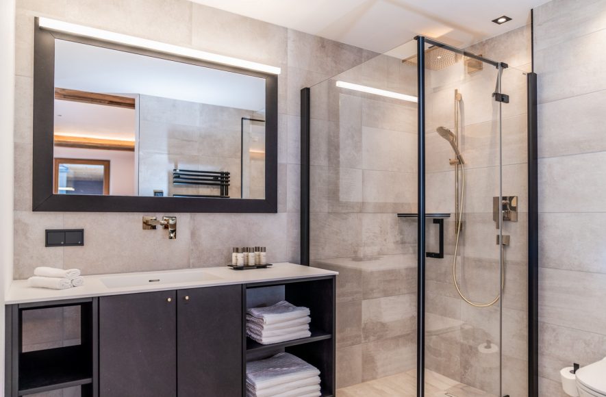 Badezimmer: Dusche, Handtuchwärmer, Föhn