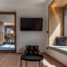 Die Ferienwohnung „Edelweißkönig“ im ersten Obergeschoß empfiehlt sich als echtes Traumdomizil für Ihren Aufenthalt zu zweit oder als kleine Familie mit einem Kind. Behaglich auf höchstem Niveau und eine Ausstattung, die keinerlei Wünsche offen lässt, präsentiert sich die Küche mit modernem Interieur und hochwertigen Einrichtungselementen. Das Schlafzimmer mit Doppelbett ist in authentisch charmantem Stil der Region gehalten. Für Sauna-Fans wird das Badezimmer mit eigener Sauna und Panoramafenster die Krönung sein, während sich Genießer und Naturfreunde wohl kaum von den majestätischen Ausblicken der Terrassen oder von der lodenbezogenen, überbreiten Panorama-Fensterbank lösen können. Zum Glück müssen Sie sich ja nicht entscheiden, denn der „Edelweißkönig“ bietet Ihnen alle Annehmlichkeiten.