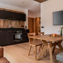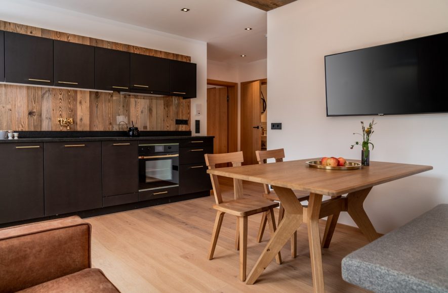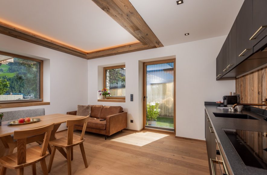 Die Ferienwohnung „Hüttenkaiser“ überzeugt mit ihrem modern-ursprünglichen Stil, bei dem wertvolle Materialien, wie Holz, Leder und Loden, auf ein elegantes Interieur treffen. Die Komplett-Ausstattung der Küche mit hochwertigen Geräten und Geschirr lässt keine Wünsche offen. Großzügige Ablagen, gemütliche Sitz- und Entspannungsgelegenheiten und ein Bad, das Chic und Funktionalität vereint, machen Ihren Aufenthalt zu etwas Besonderem. Die Ferienwohnung „Hüttenkaiser“ befindet sich im Basement des Almadel und bietet Ihnen einen Garten mit gemütliche Outdoor-Sitzgelegenheit, die nach Süden ausgerichtet ist.
