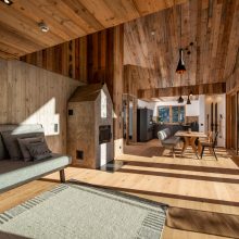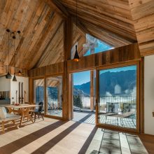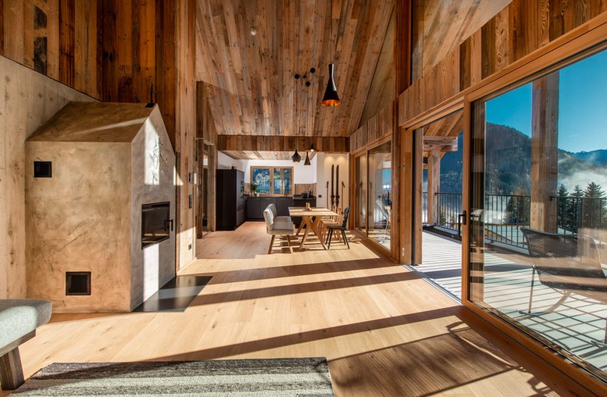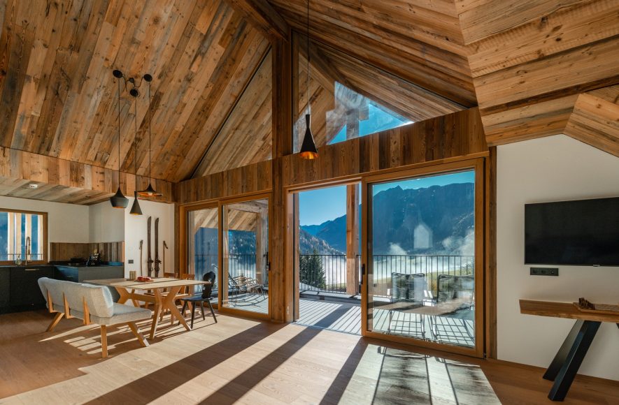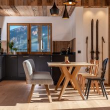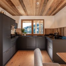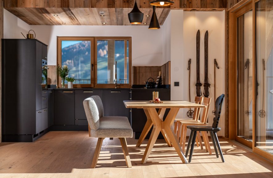 Es erwartet Sie eine sehr großzügige Küche mit einer luxuriösen Ausstattung sowie ein Wohn- und Genussbereich, der seinen unwiderstehlichen Charme durch die großen Panoramafenster und die authentischen Holzelemente erhält.