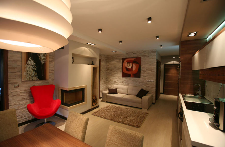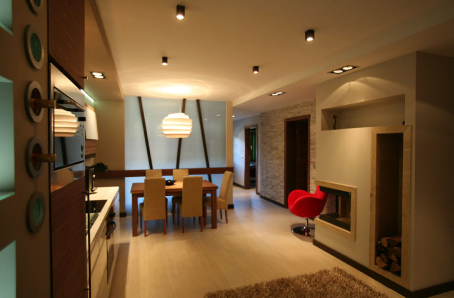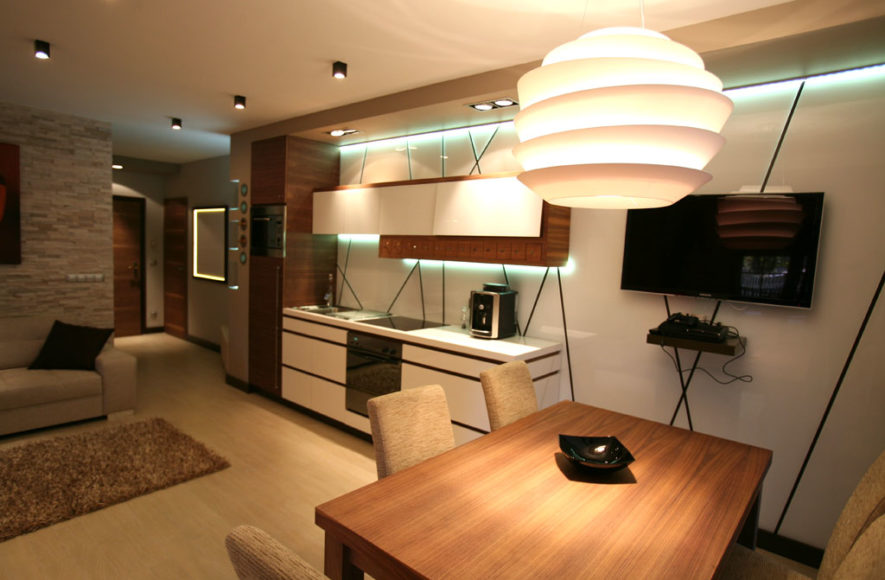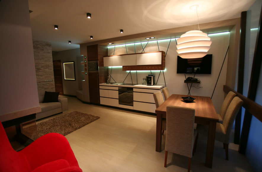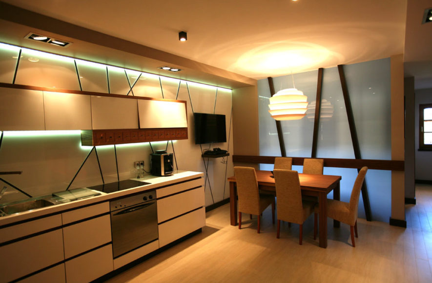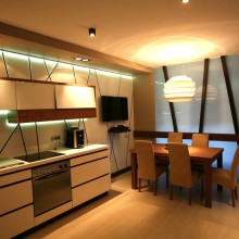 Küche vollausgestattet mit Bohnen-Kaffeemaschine, E-Herd, Backofen, Mikrowelle, Kühlschrank, Gefrierfach, Geschirrspüler