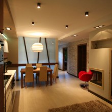 1 großzügiger Wohnraum mit Couch und einem großen Esstisch