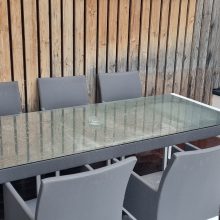 Wohnküche mit großer Essecke und vollausgestattet mit Vollautomat-Kaffeemaschine, E-Herd, Backofen, Microwelle, Kühlschrank, Gefrierfach, Geschirrspüler