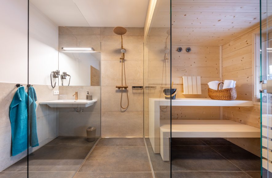 uribi N°2 hat ca. 81m2 Wohnnutzfläche plus 28m2 Balkon und eigener Sauna