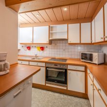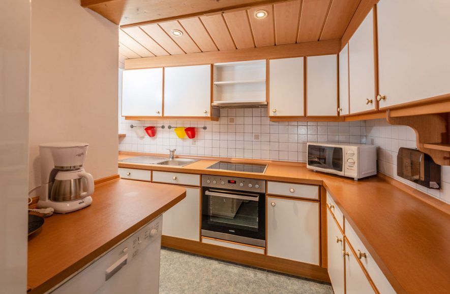 1 Küche voll ausgestattet mit E-Herd, Kühlschrank, Geschirrspüler, Mikrowelle, Wasserkocher