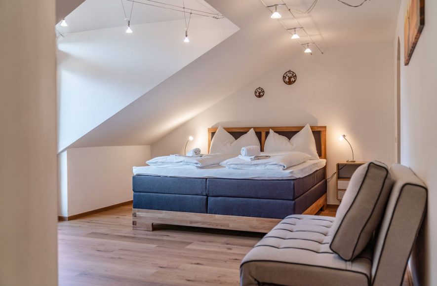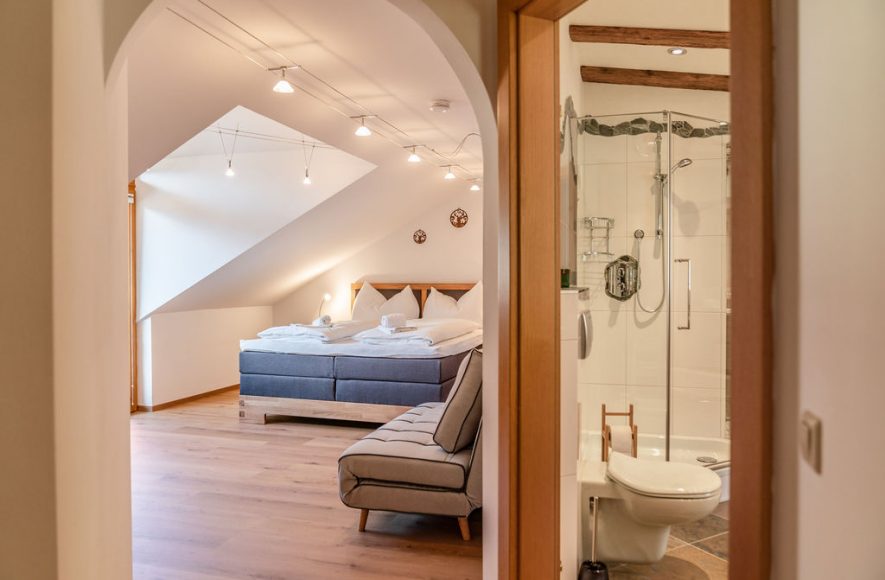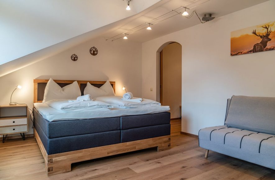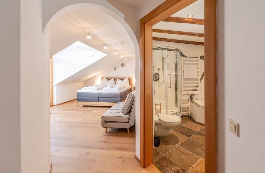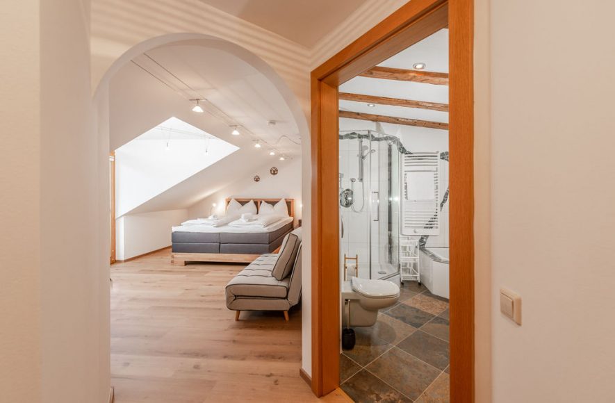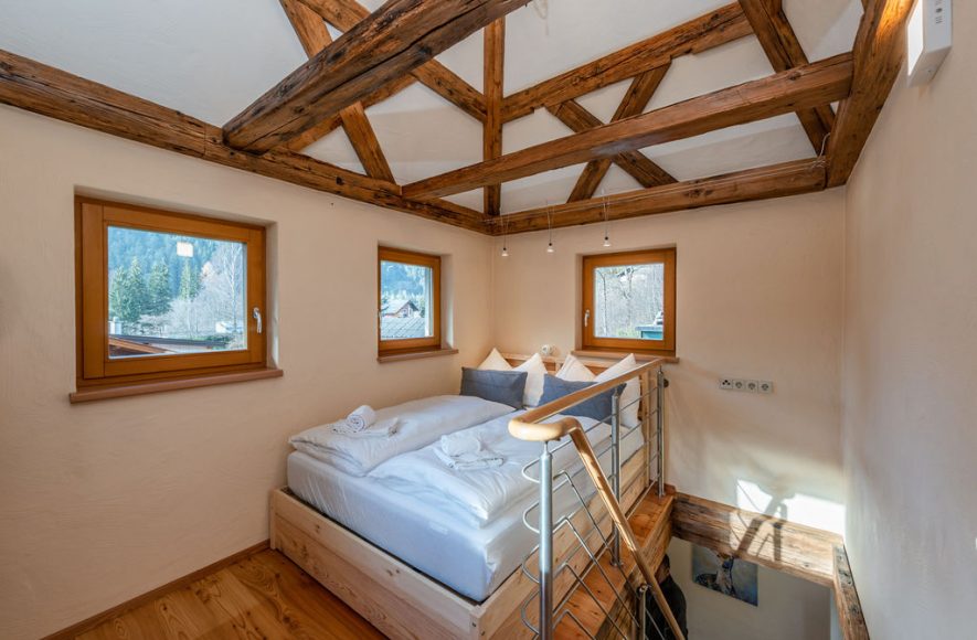 1 offenes Turmschlafzimmer mit Bett 140 cm x 200 cm