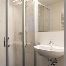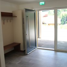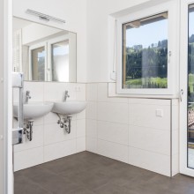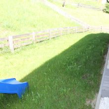 Wir haben speziell für diesen Fall einen kleinen Garten angelegt, wo Sie den Hund einfach in der Früh rauslassen können.