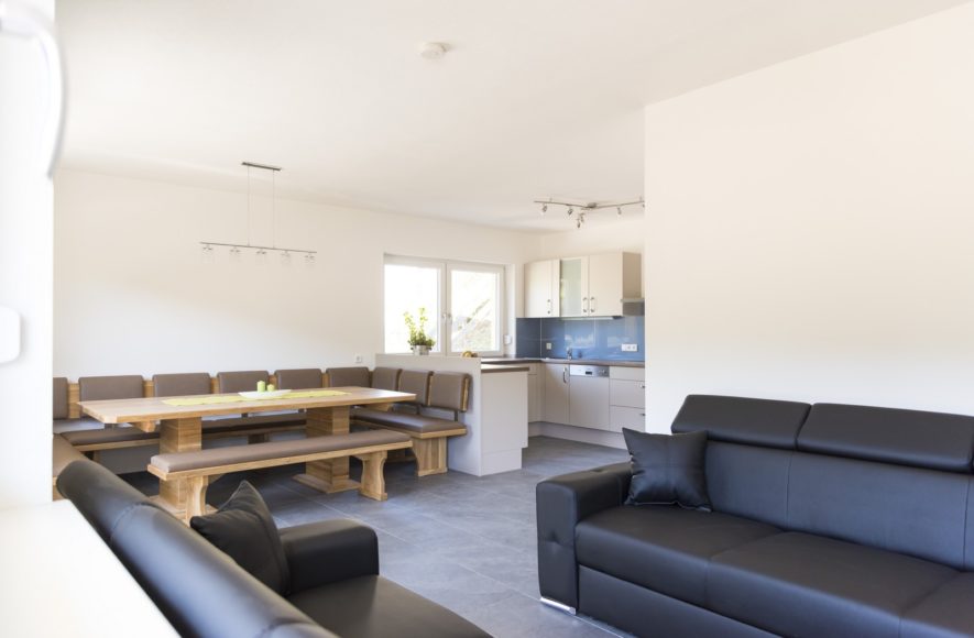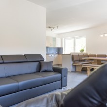 - 1 großer vollausgestatteter Wohnraum mit gemütlicher Essecke und Sofas für 2 Personen