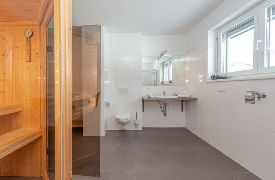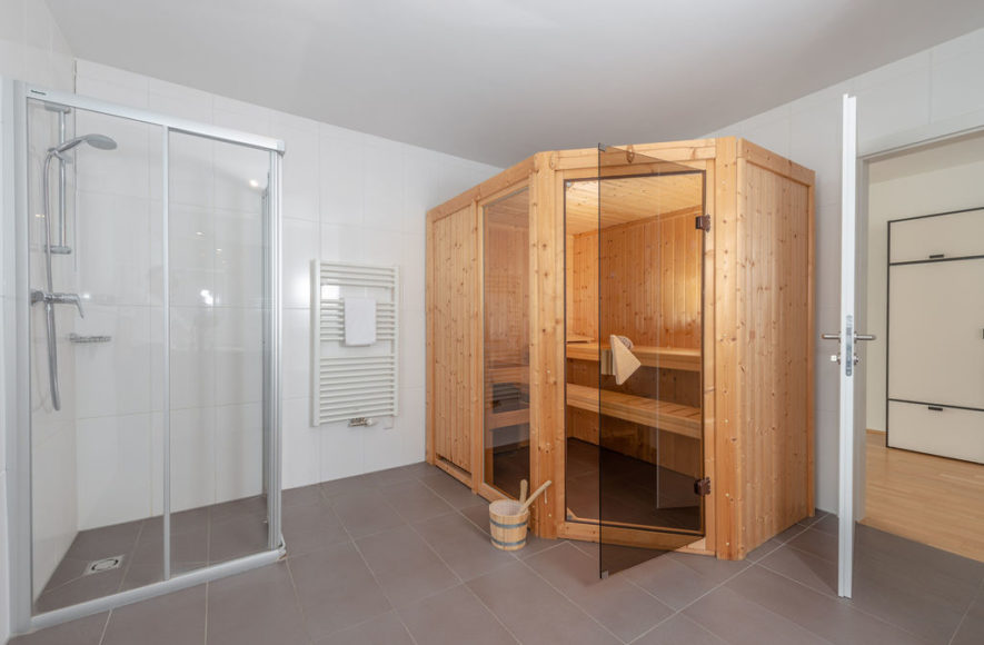 1 Badezimmer mit Sauna, Dusche und WC