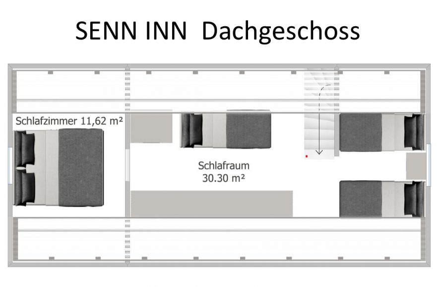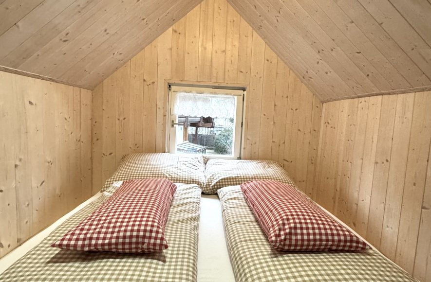 • 2 Schlafzimmer wobei 1 Schlafzimmer mit 3 Einzelbetten nicht durch eine Tür getrennt ist