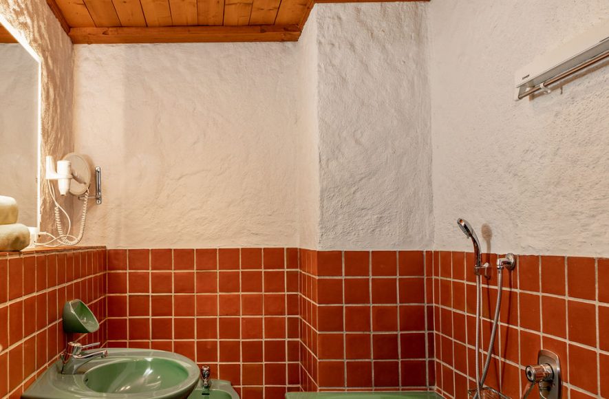 1 Badezimmer mit Waschbecken, Badewanne; WC in einem extra Raum