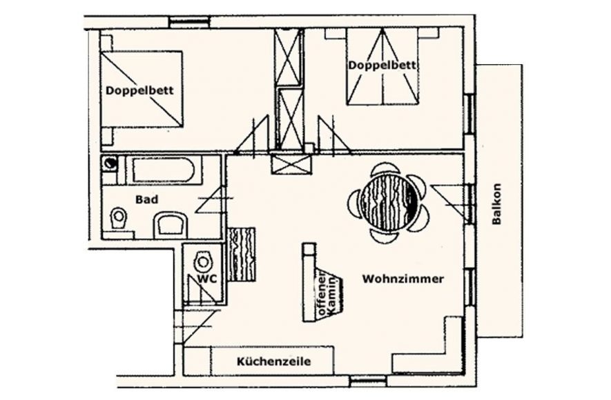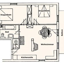 Das Appartement hat eine Größe von ca. 70 m² und umfassen zwei getrennte Schlafzimmer, Wohnraum inkl. Küchenzeile, Badezimmer, WC, TV, Telefon, Fußbodenheizung und gratis Wlan.