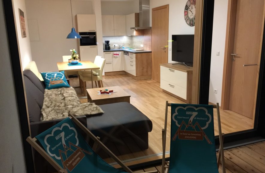 Genießen Sie Ihren Platz auf Wolke 7 im hochwertig und vollausgestatteten Apartment & Wellness Top 7 im Haus am Sonnenhang in Schladming. Durch den Aufzug ist es auch für Rollstuhlfahrer bequem erreichbar.