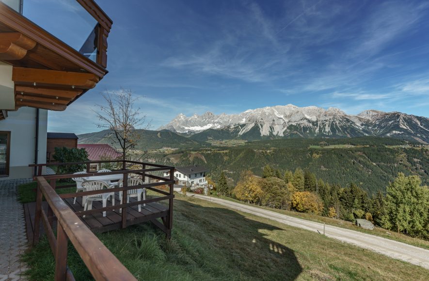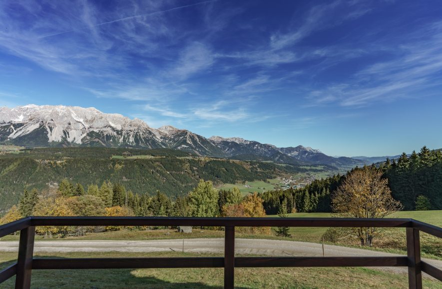 Vom Appartement hat man eine wunderschöne Aussicht zum Dachstein und über das Ennstal.