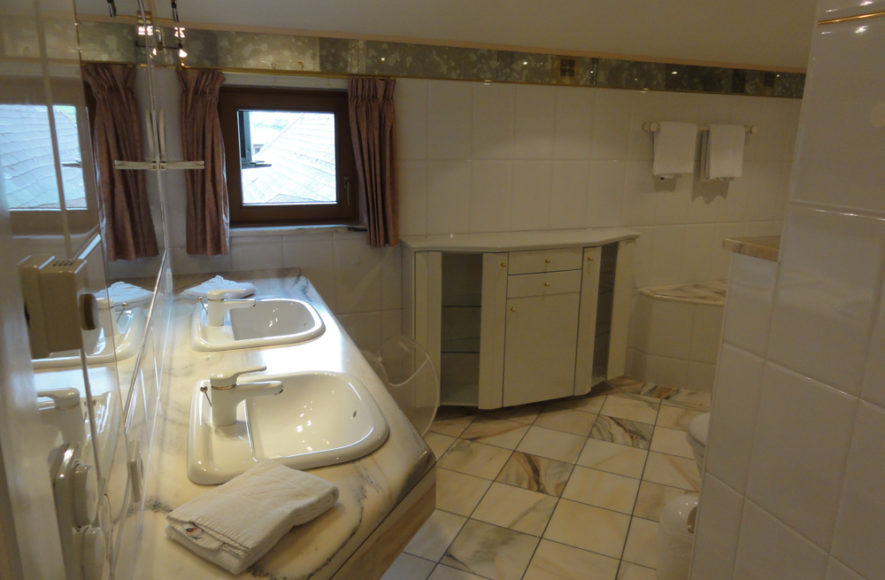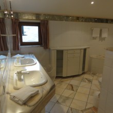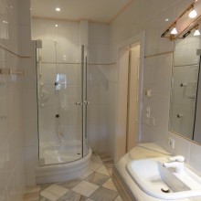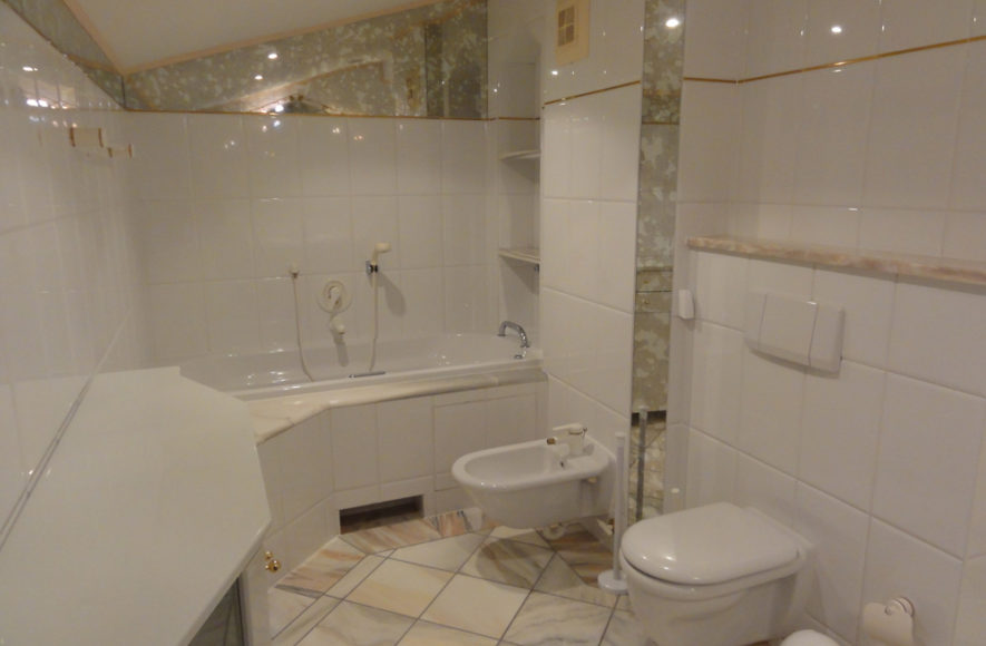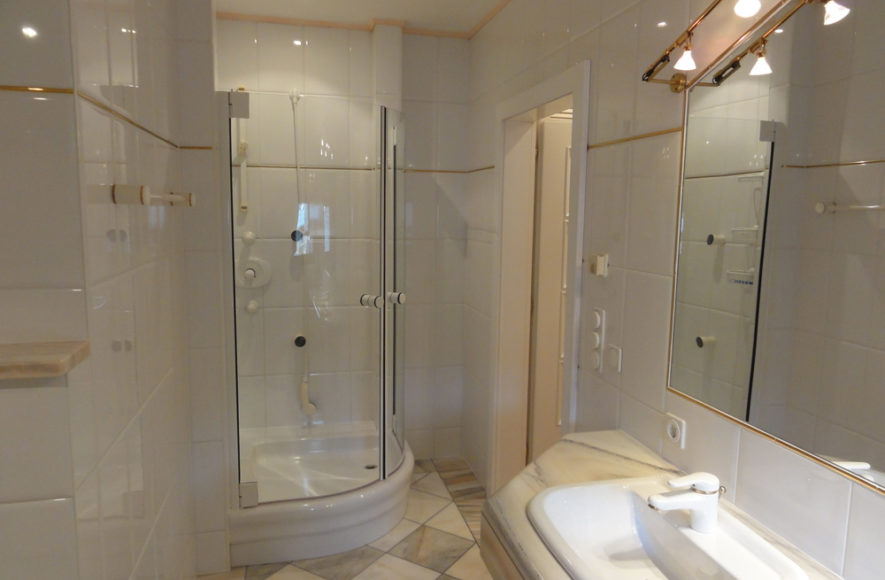 • 1 großes Bad mit Dusche, Badewanne und WC