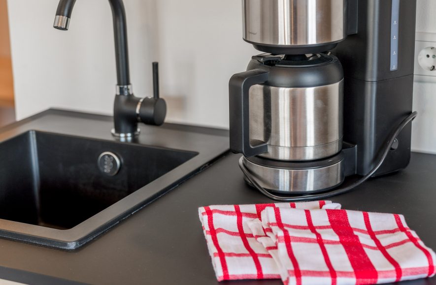 einer vollausgestatter Wohn Küche mit einer Couch für 2 Personen.