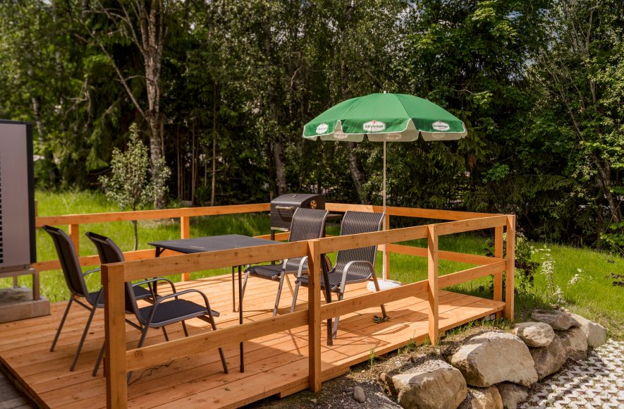 Ebenso ein kleiner Garten, ein Parkplatz sowie eine kleine Terrasse