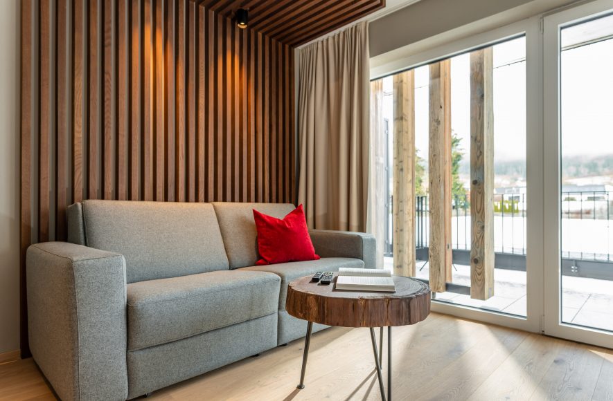 Schlafzimmer mit TV 49“ und Zimmersafe